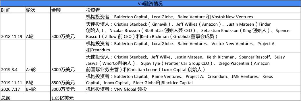 Voi成立于2018年8月,总部位于瑞典斯德哥尔摩,现已入驻欧洲11个国家的40多个城市。成立两年内,Voi共获得4轮融资,共计1.65亿美元,最近一次B+轮融资是在今年7月,投后估值近2.7亿美元。今年6月,Voi宣布实现收支平衡,预计2021年实现盈利。
