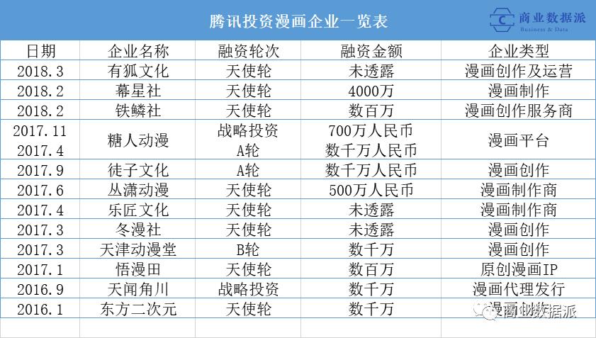 此外,腾讯为了扩大IP矩阵,也不惜投入重金投资漫画工作室及运营方。