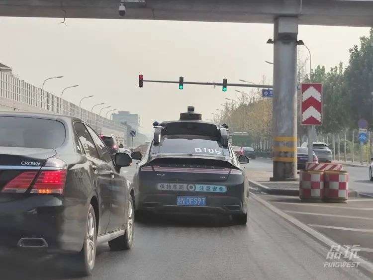 不过好的地方在于地面道路标志线的规划都非常完善,也很清晰,这给无人车认路变道提供了更好的条件。