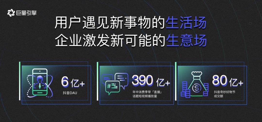 从激发用户群体新兴趣,到解决生活问题,创造新的消费需求,抖音、今日头条、西瓜视频等内容平台所担负的角色也在发生转变,它们已经不再是单纯的内容场,而成为用户的生活场,对企业而言,则意味着从流量场向生意场的演进。消费需求和商业机会是共生的一体两面,当生活与生意相对应,巨量引擎即能够借助内容上的连接,加速生活和生意场域之间新机会的转化,以此激发出生意的不同新可能。