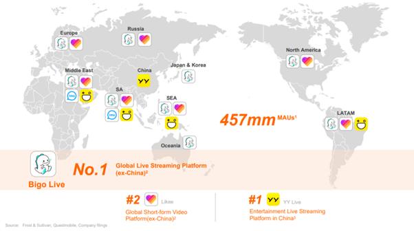 在今年初,欢聚=YY+虎牙+BIGO。在百度完成收购后,欢聚=BIGO=海外。