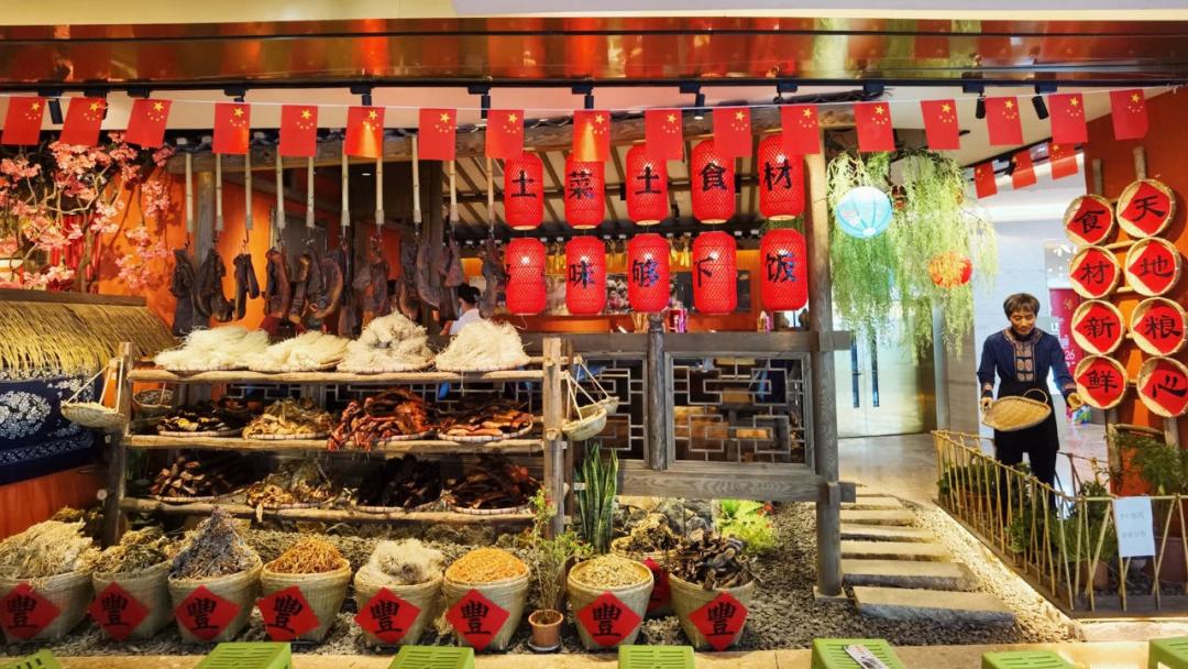 黄泥土墙、竹栅栏、红灯笼、吊挂在屋梁上的腊肉腊鱼,堆积摆放的一篮篮土鸡蛋、辣椒、南瓜等食材、随处可见的犁耙、锄头、箩筐……各种土气的农家元素组成了一家餐厅,乍一看,宛如农家小院和集市的结合体,这就是近两年在深圳以“土”走红的网红餐厅——农耕记。