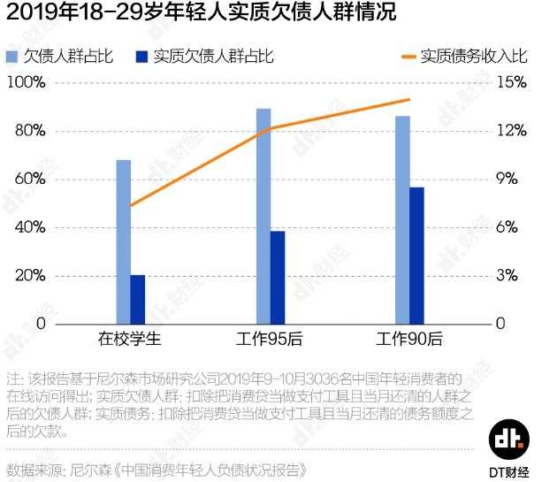尼尔森对18-29岁年轻群体的调研就显示,调研中有86.6%的人属于“负债人群”,人均负债12万。