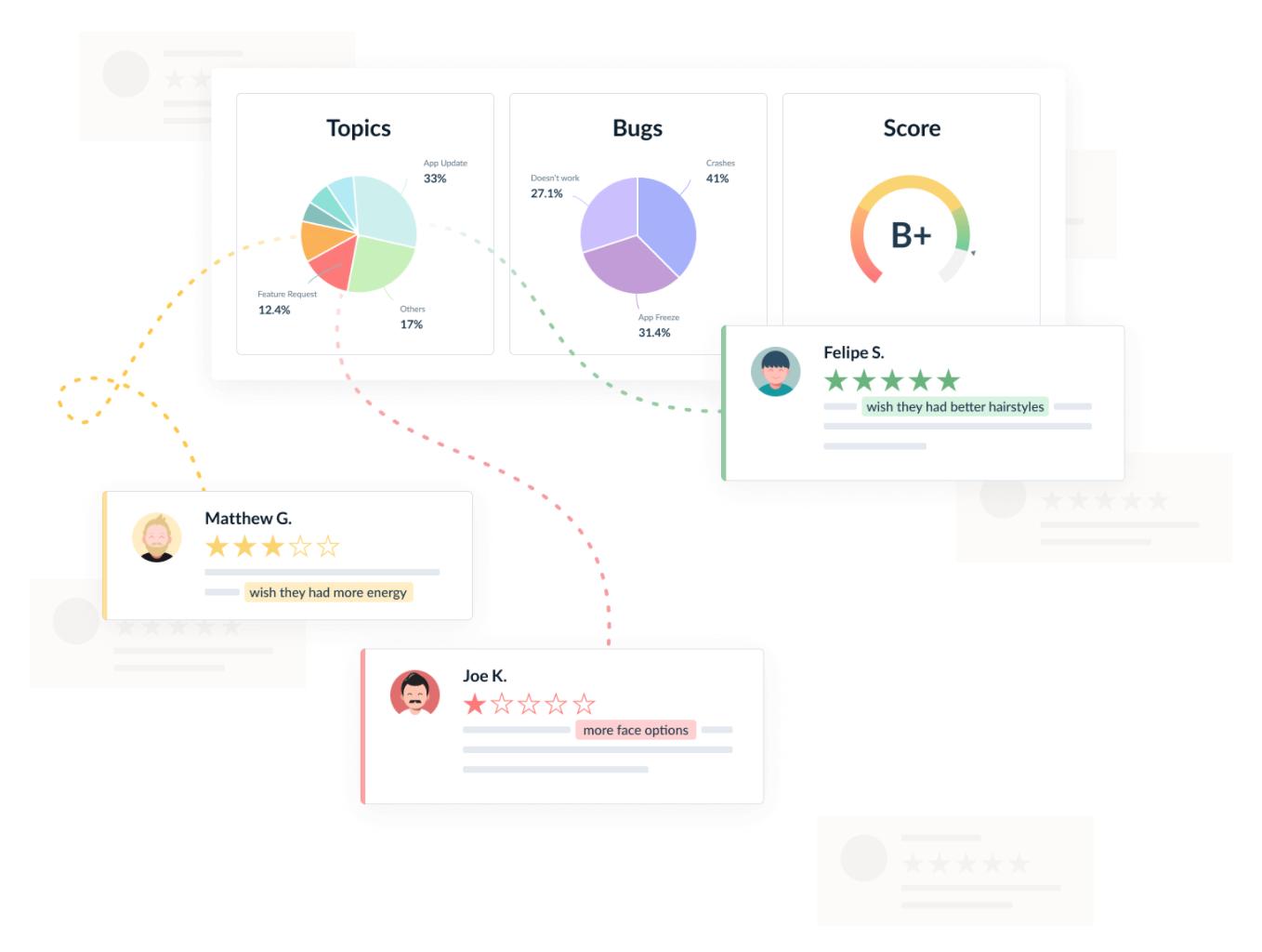 客户之声工具:收集产品洞察、功能请求、错误报告和投诉;了解用户及其需求;使应用评论和用户反馈更有意义。