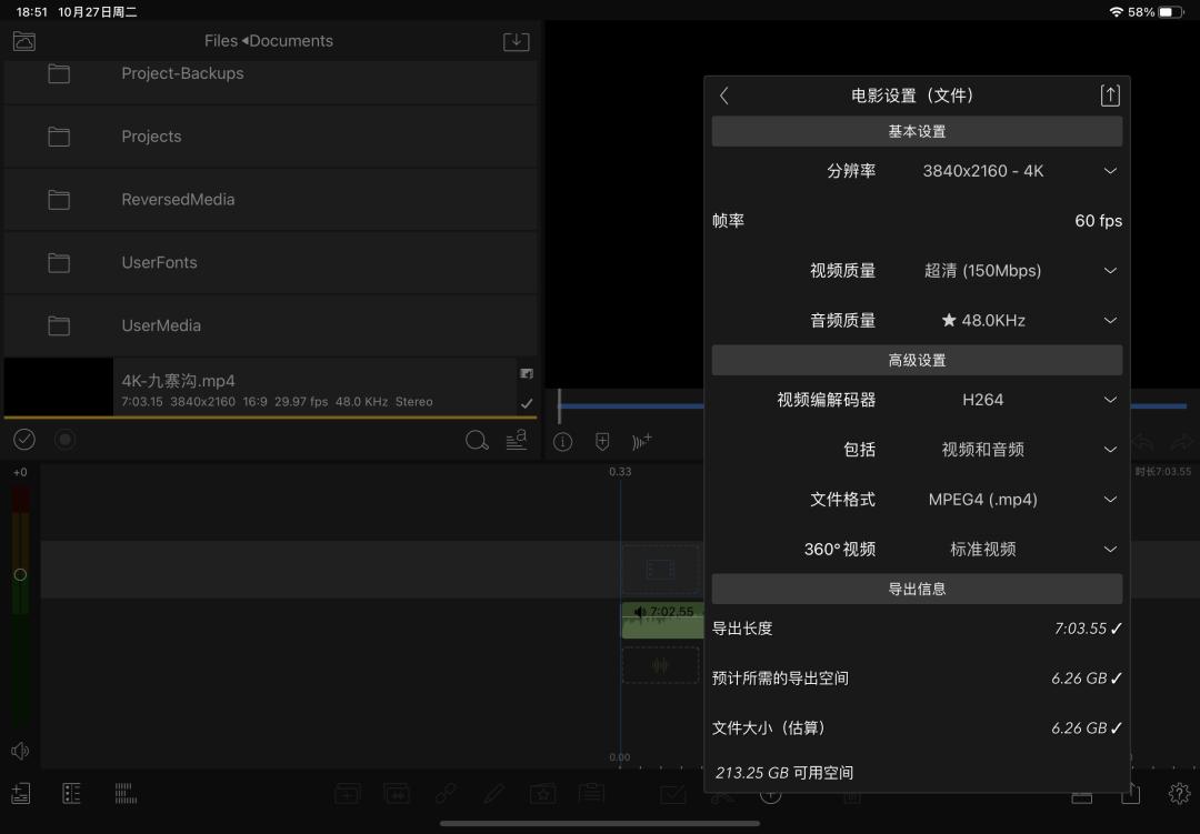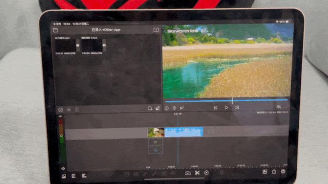 接下来,跑个专业软件试试。我们准备了一段7分钟4.6G大小的4K视频素材,然后使用LumaFusion将视频导出为4K 60FPS,总耗时8分40秒。这个成绩,对于平板电脑来说,已经是非常出色了。