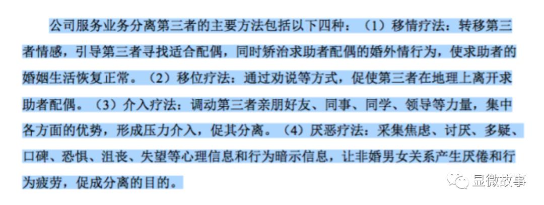 他们有着专业的团队,使用攻心、利诱、离间、甚至“美人计”来帮助委托人劝退“小三”,同时收取从几千到几十万不等的高昂服务费用。
