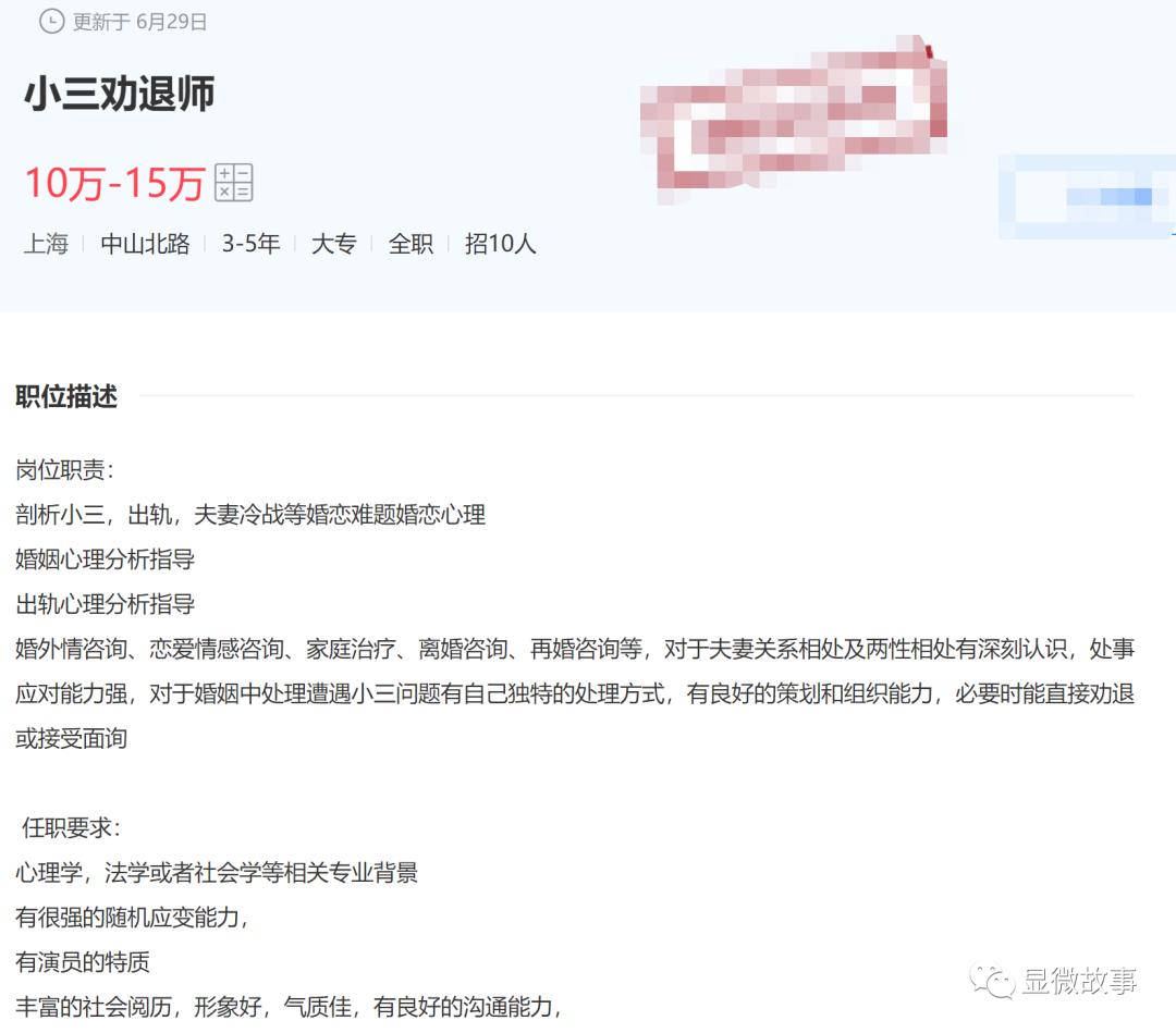 一种新型的职业,也开始逐渐进入人们的视野。他们就是“小三劝退师”,工作内容是劝退第三者、帮委托人修复婚姻。