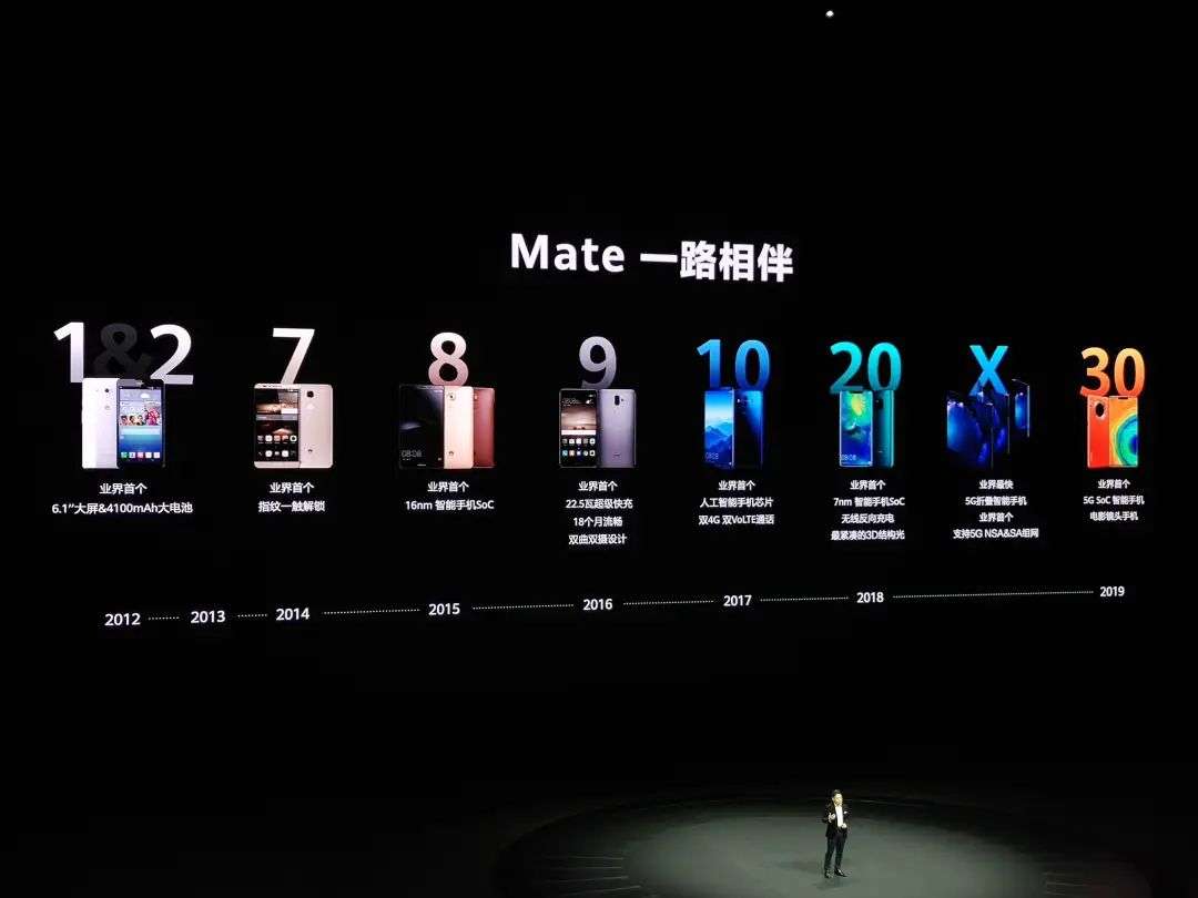 在过去的 8 年中,华为陆续推出了 10 款 Mate 系列机型。从第一代 Mate 开启 6 英寸的大屏时代,到 Mate7 搭载的全球首款一触式按压指纹解锁,再到 Mate8 搭载世界首款 16m 制程工艺 Soc......可以说每一代的 Mate 手机,都代表着华为当年最新鲜的科技结晶。