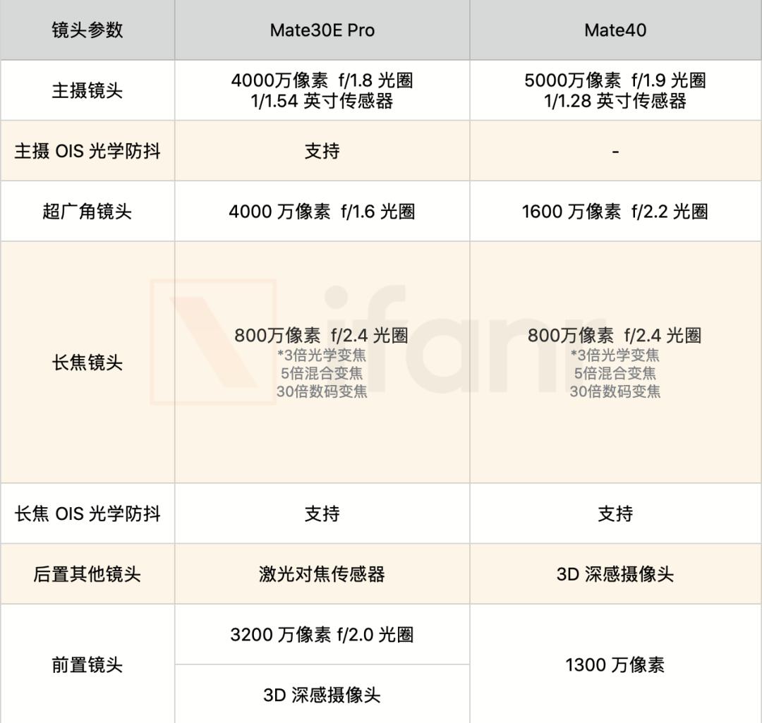 如果你不爱玩大型游戏,并且对摄影比较感兴趣,我的建议是 Mate30E Pro。毕竟其后置主摄镜头带有 OIS 光学防抖,在夜景拍摄需要长时间曝光时,会获得更稳定的画面。另外 Mate30E Pro 超广角镜头的参数,也比 Mate40 要好一些,不仅光圈更大,像素也更高。