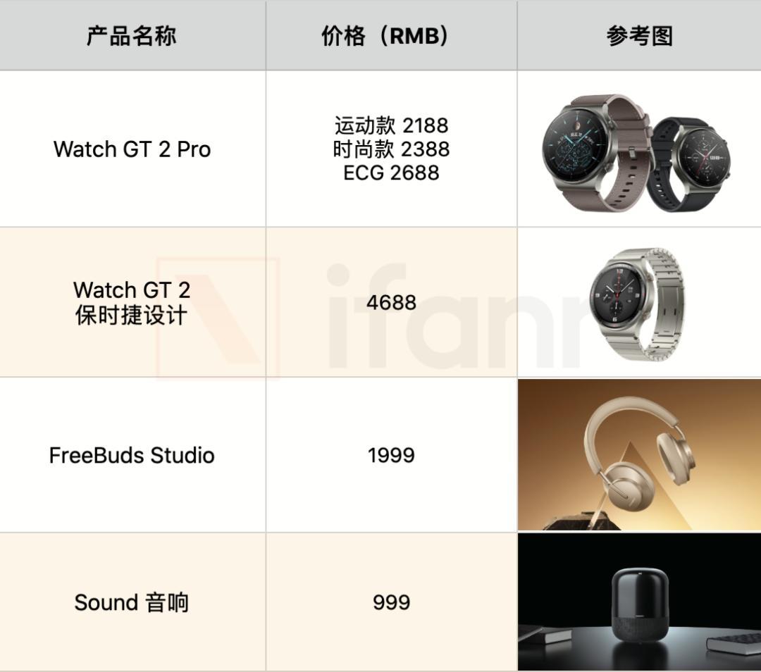 除了手机,我们再来看手表和音频阵营新品的售价。