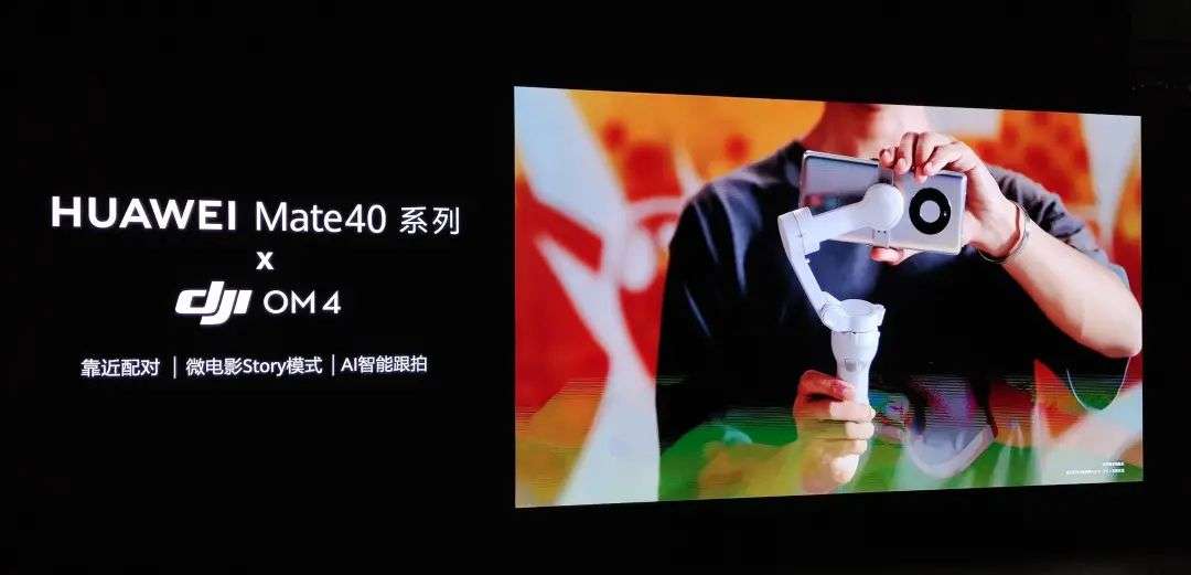 为了拓展其影像能力,华为联合大疆推出了 OM4 防抖云台,支持靠近配对、微电影模式、AI智能跟拍。