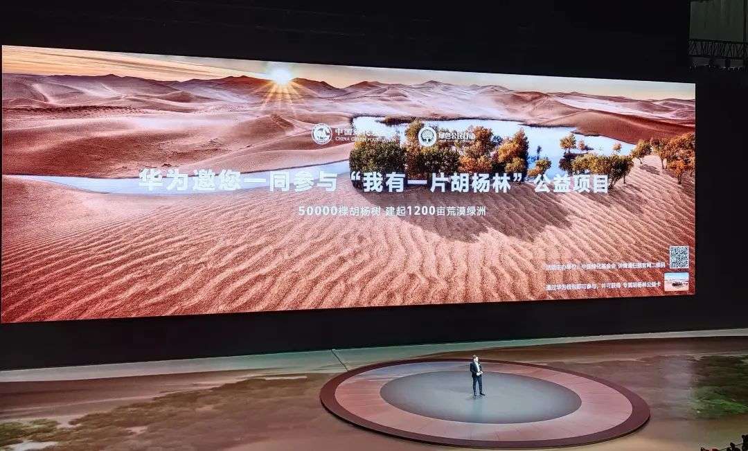 在这场发布会上,余承东三次提及了「胡杨精神」,分别为华为 Mate40 系列胡杨色设计、「我有一片胡杨林」公益项目发起,以及发布会总结陈词。