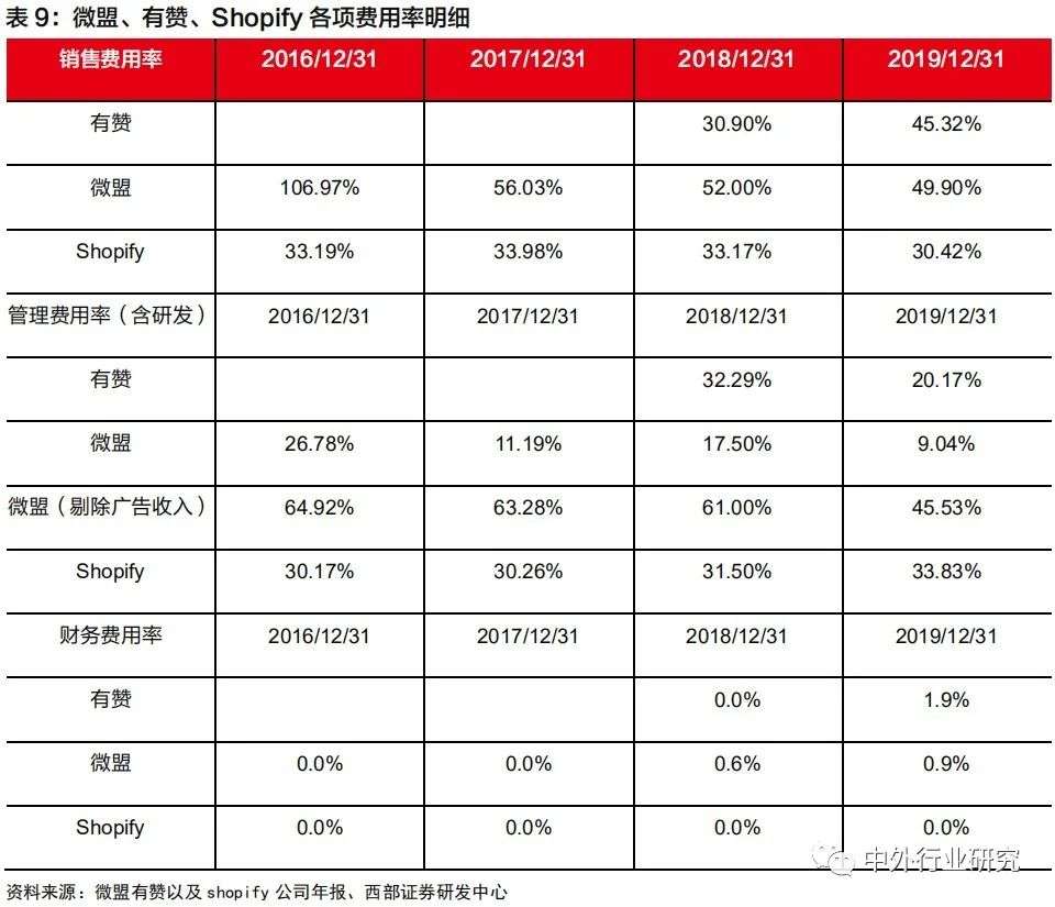 微盟、有赞VS Shopify:中美电商SaaS均高度依赖销售费用投入,Shopify相对发展更成熟