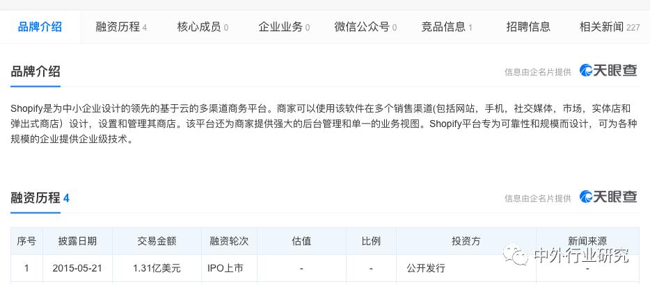 天眼查APP数据显示,Shopify是为中小企业设计的领先的基于云的多渠道商务平台。