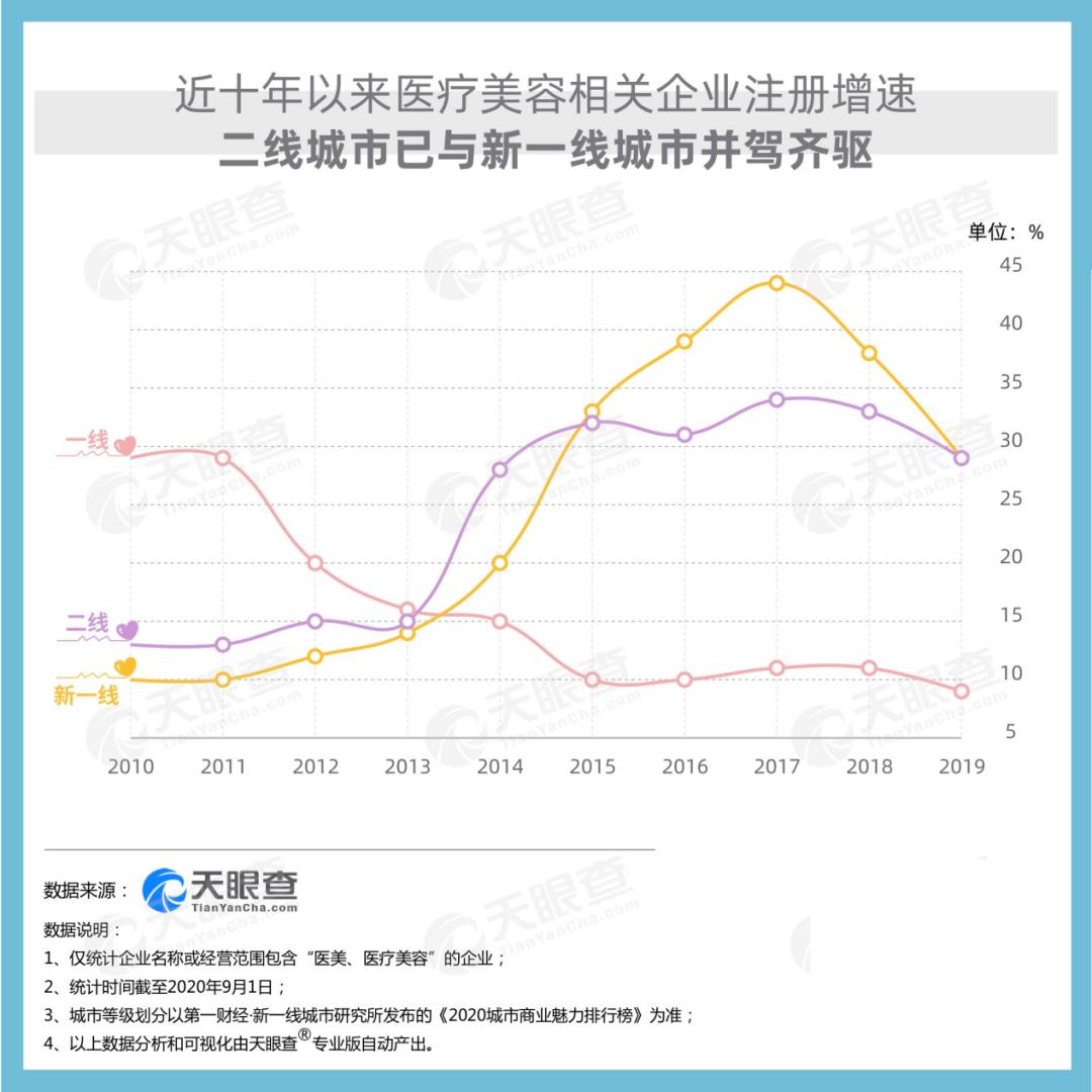 此外,根据天眼查app数据报告,可以更直观的表现出去年医美产业的降速情况。二线城市与新一线城市并驾齐驱,但双方都出现降速情况。尤其是一线城市,所谓的增速“并驾齐驱”,其实是由于新一线城市降速幅度更大一些。这种情况发生,离不开那些黑医美给行业带来的“污名化”。