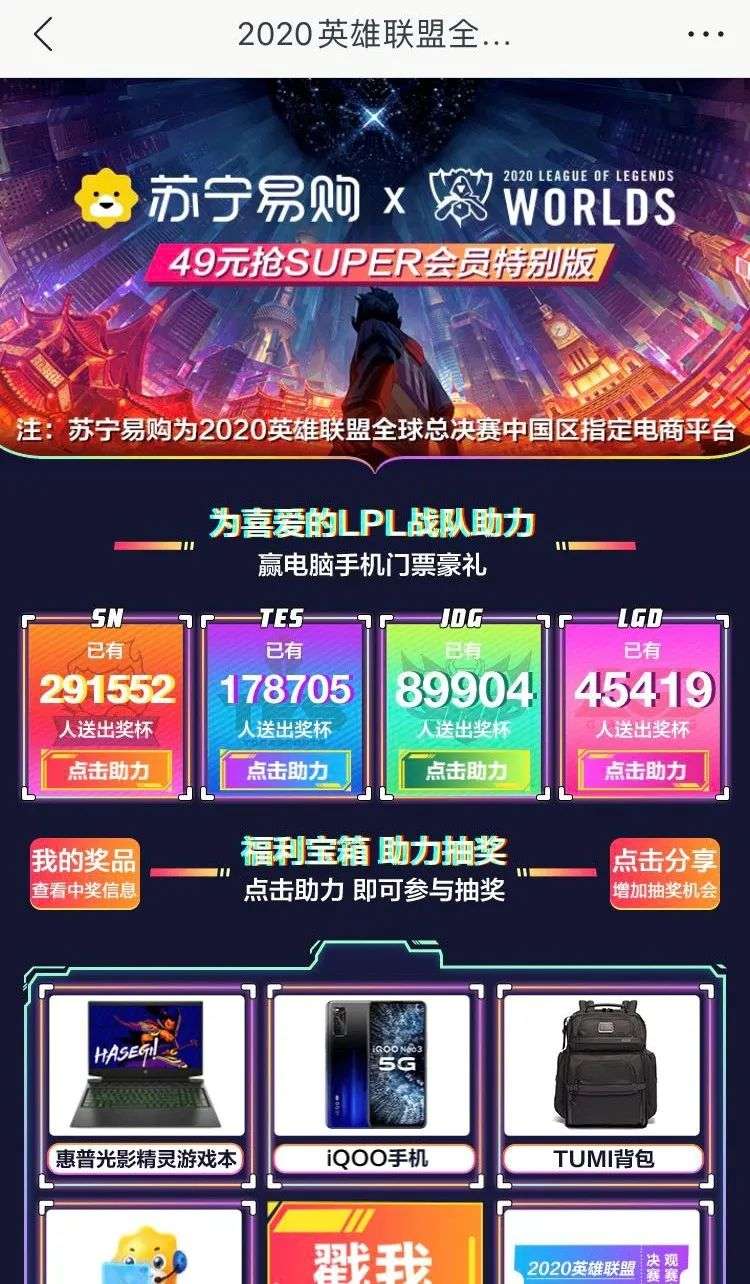 好在,我们看到了很多改变正在发生:SN在S10期间的黑马表现,苏宁易购商城内为LPL产品搭建的专题页面,苏宁会员与游戏点券的打包优惠营销,以及苏宁淘宝客服的机智回复都给行业内带来很多启发。