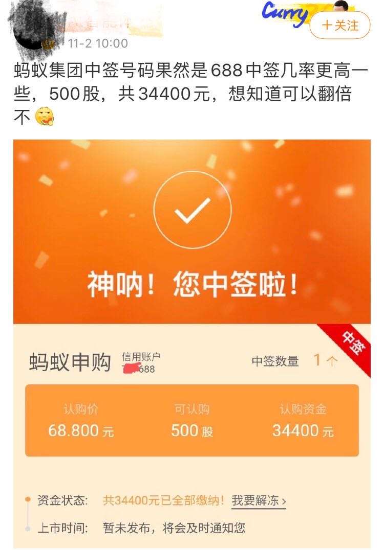 70多万人中签,中签率不足0.13%,蚂蚁打新盛宴落幕。