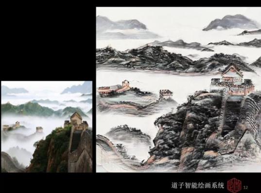清华大学未来实验室博士后高峰,分享了AI技术在艺术与设计领域的创新性应用。其团队开发的道子智能绘画系统,利用计算机将自然图像以风格迁移的方式转变成艺术图像,根据所得艺术图像进行水墨画绘作,实现技术与艺术间的跨界融合。高博士也介绍了道子在服装设计、工业设计、装置艺术等领域的探索成果。