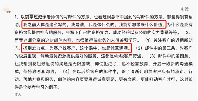 得到APP评论区中就有人表示:以往写邮件更多是“我是谁,我是做什么的,我能给您带来什么价值”,而从罗振宇和华为云的这次分享中,他理解了“找到发力点,为客户找客户”的价值。