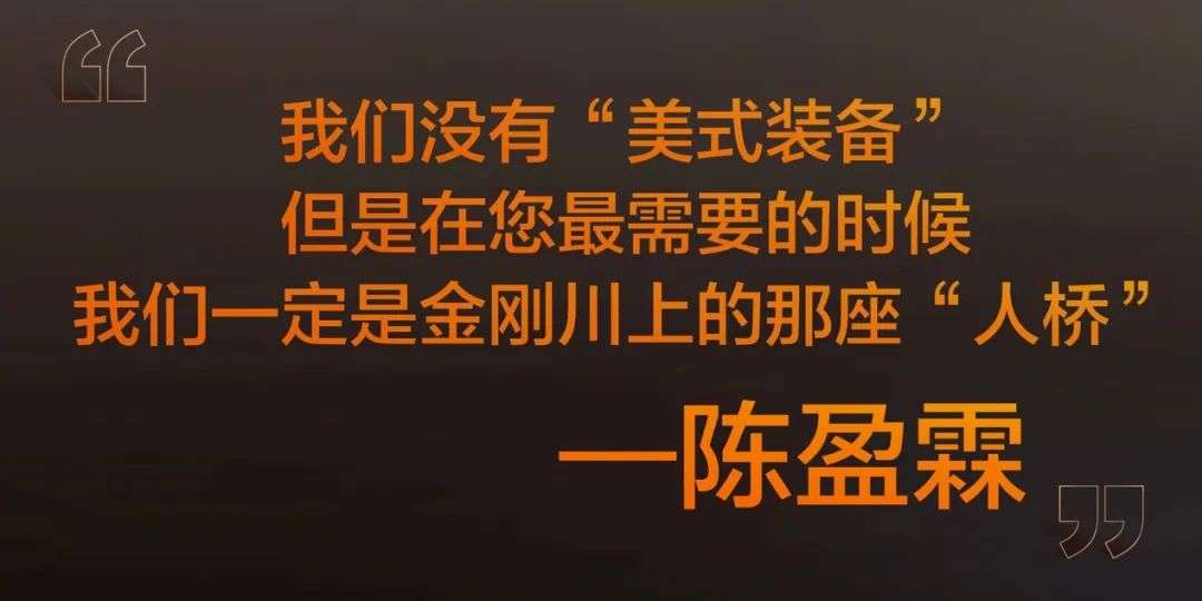 这也是为什么,陈盈霖愿意表示:我们没有“美式装备”,但是在您最需要的时候,我们一定是金刚川上的那座“人桥”。