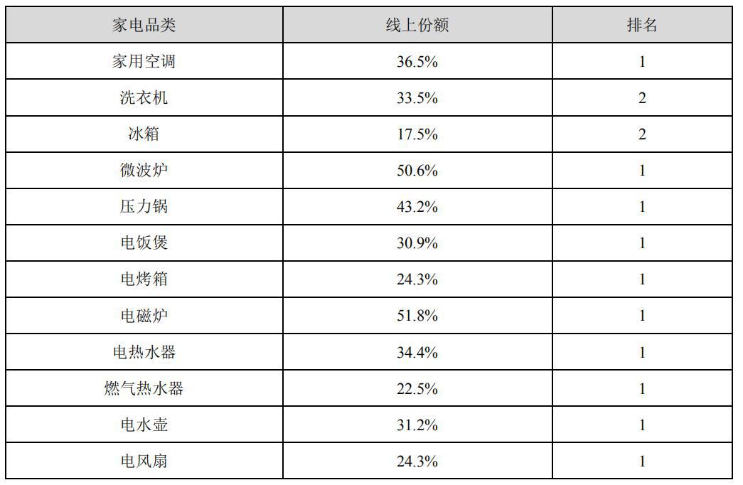 其中,冰箱和洗衣机持续扩大行业领导者优势,线下市场份额分别是第二名的2.98、1.52倍,线上市场份额分别是第二名的2.2、1.26倍。