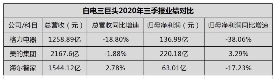 白电巨头的三季报:格力没那么差,美的海尔也没那么好