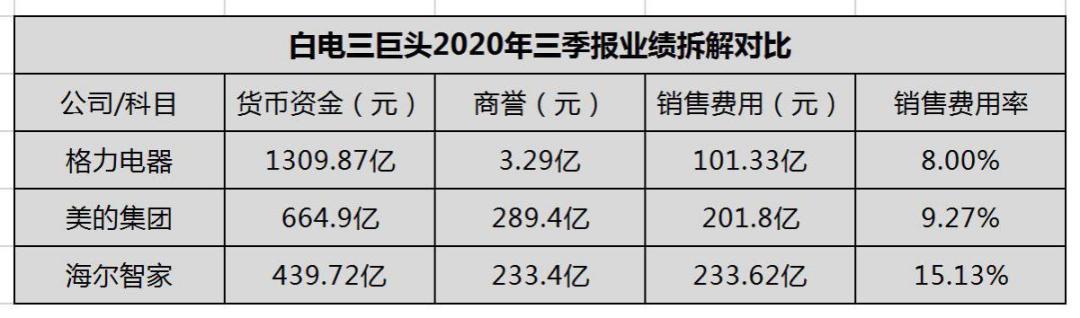 图1:白电三巨头2020年三季报业绩对比 来源:公司财报