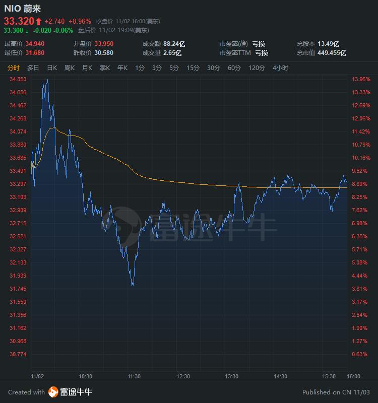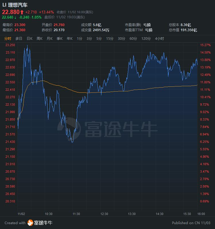 中概股3分钟 | 10月交付量纷纷创新高,理想飙涨超13%,蔚来涨近9%