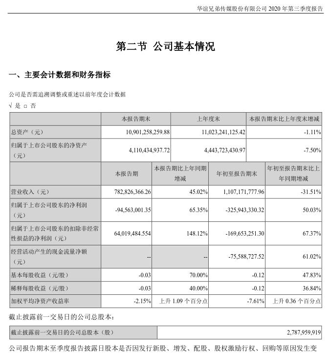 Q3财报中表现最令人失望的是华谊兄弟,当外界预期《八佰》票房会计入Q3业绩,从而驱动华谊兄弟业绩大涨的时候,华谊兄弟不仅没有计入反而亏损0.93亿元,前三季度也巨亏3.26亿元。