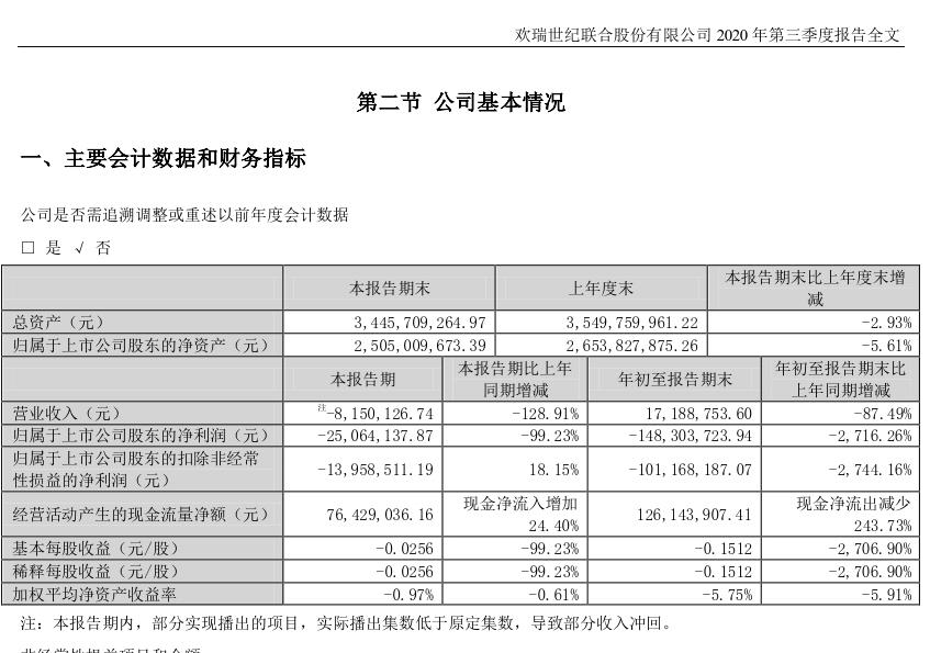 欢瑞世纪Q3 亏损0.25亿元,整体前三季度亏损1.25亿元,目前其古装剧积压以及应收账款数额过大之类的问题并没有实质性的解决,总体来看2020年全年亏损的几率非常大,加上2019年已经暴雷亏损5.51亿元,2021年大概率会被强制ST。