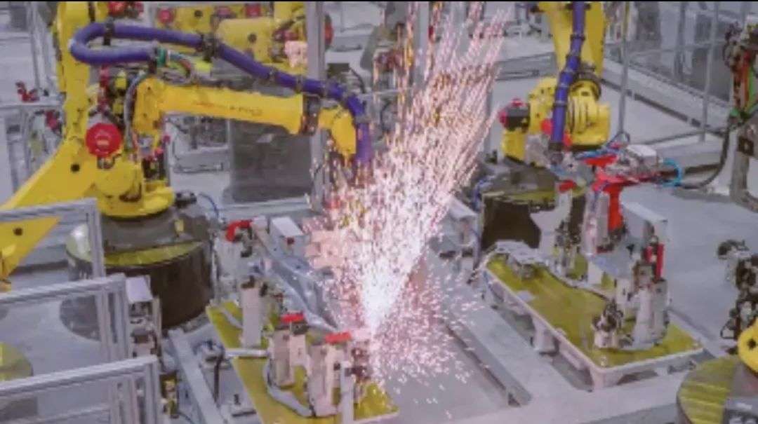 机械臂上下翻飞地焊接着,不时飞溅出红色火花;无人运输车(AGV)在地面上灵活地相互躲让着,停停走走全靠“自觉”,机器电缆“尾巴”成为历史,柔性生产才是现实……