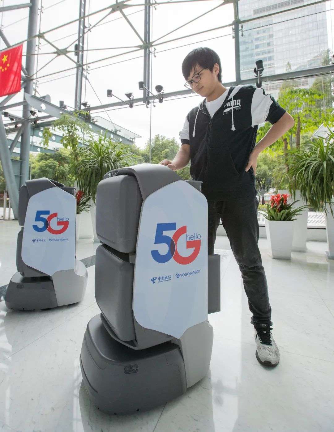 电信NB-IoT技术令机器人和闸机、电梯相连。得益于5G高带宽、低时延特性,机器人发出的指令能被快速传递和响应。