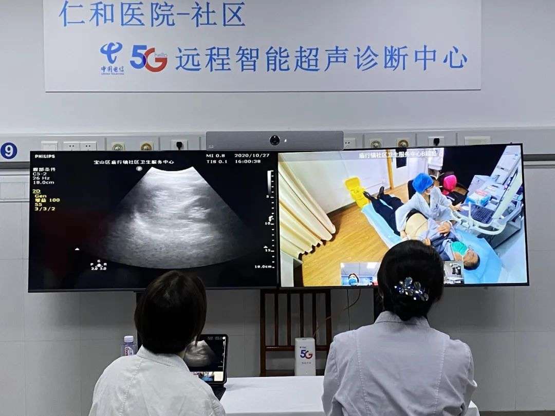 “病人吃过饭气体比较多,看不清病灶怎么办?”“探头加点压,让病人侧身45度,做个肋间切,胆囊底部没有拍全,让病人深吸一口气屏住看血流。”两位医生看着眼前的大屏,不时指点着,尽管病人在几公里之外的社区医院,但丝毫感觉不到时延。