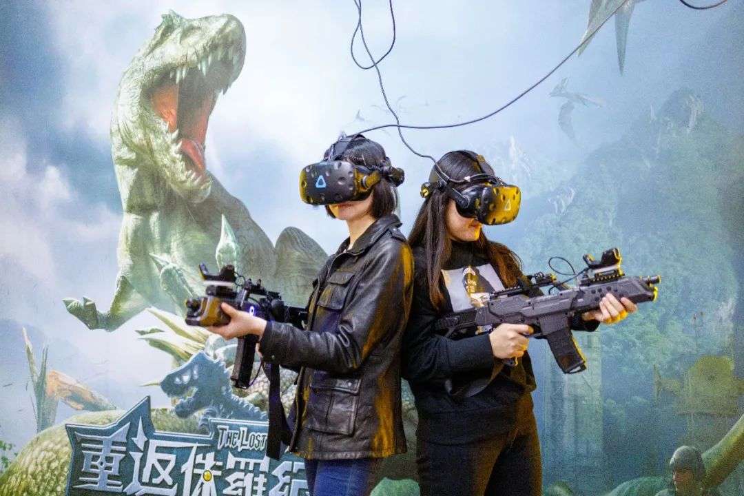 在游戏中,玩家需要通过VR虚拟枪与霸王龙、翼龙等诸多恐龙展开一番搏斗,逃离生天。这个名叫《重返侏罗纪》的游戏是5G体验中最受欢迎的VR游戏之一。