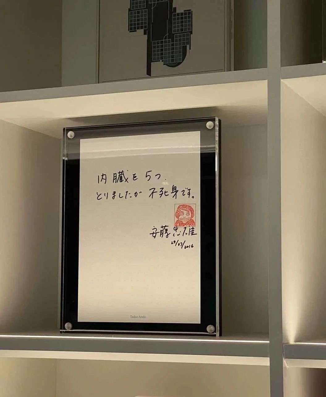 这封信是安藤在2016年7月写给马卫东的。2009年因为癌症他被摘除了胆囊、胆管、十二指肠,2014年被摘除了胰脏和脾脏。但是他依旧保持着大阪人一贯的爽朗,“没有内脏,整个人都轻快多啦!”