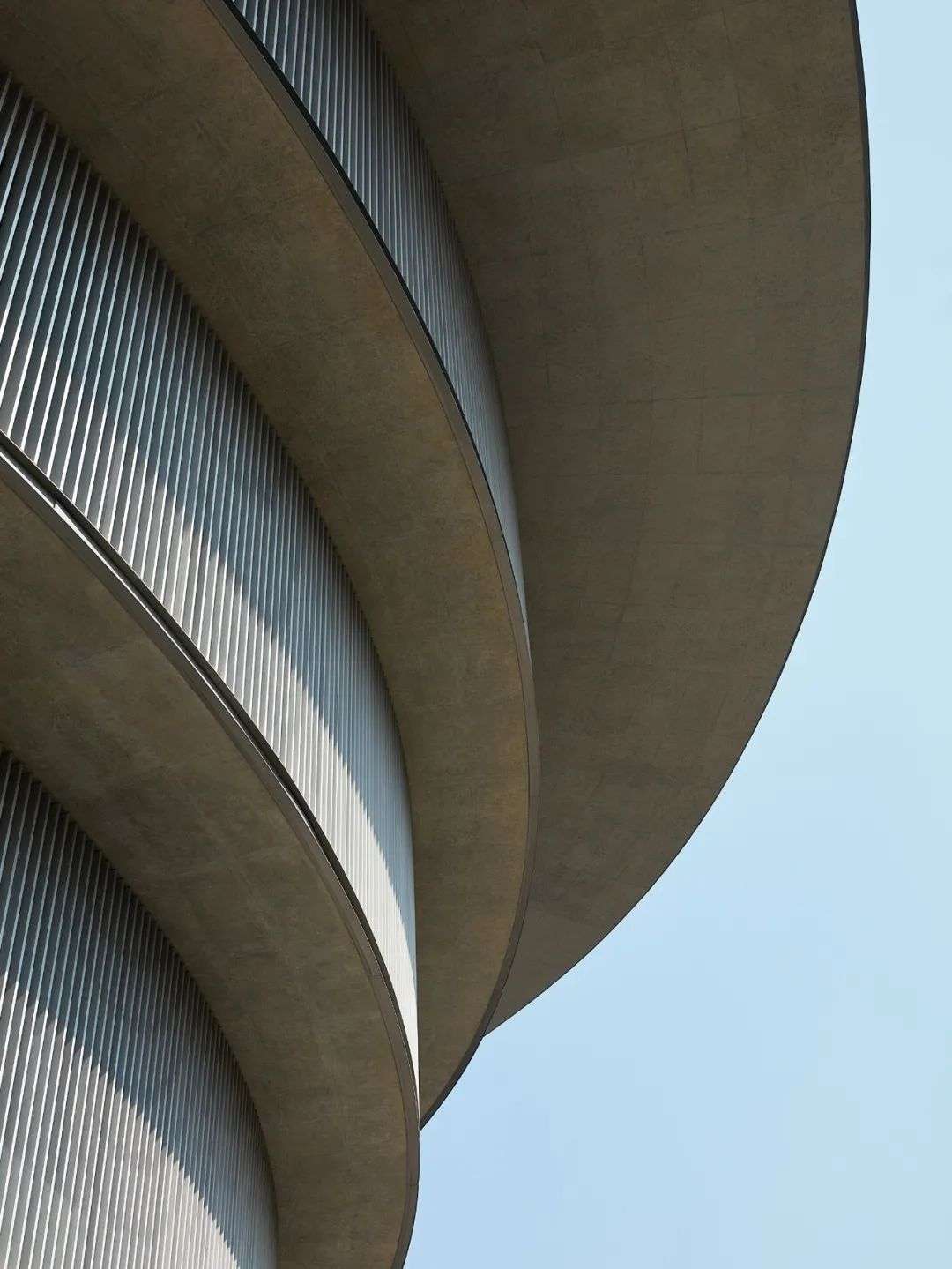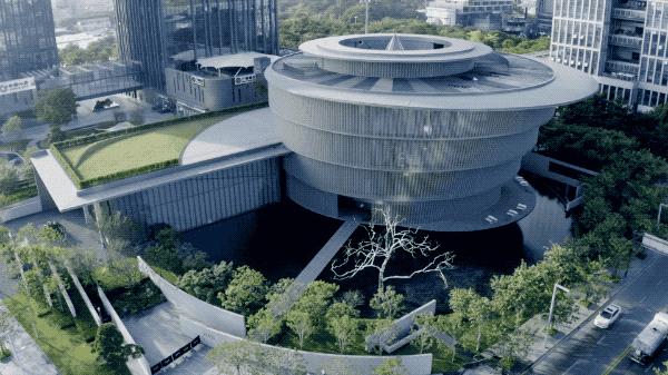 和美术馆的“和”,有和谐安泰之意,也代表文化和空间的融合。于是这一次,他借鉴中国文化中“天圆地方”的概念,并走访了好几个当地岭南建筑,弱化了以往作品中常见的方形和三角形元素。建筑的圆又是重叠交织、一层层挑空出去的,像水波纹一样向外延伸,不对称性给整个建筑带来动感和韵律。