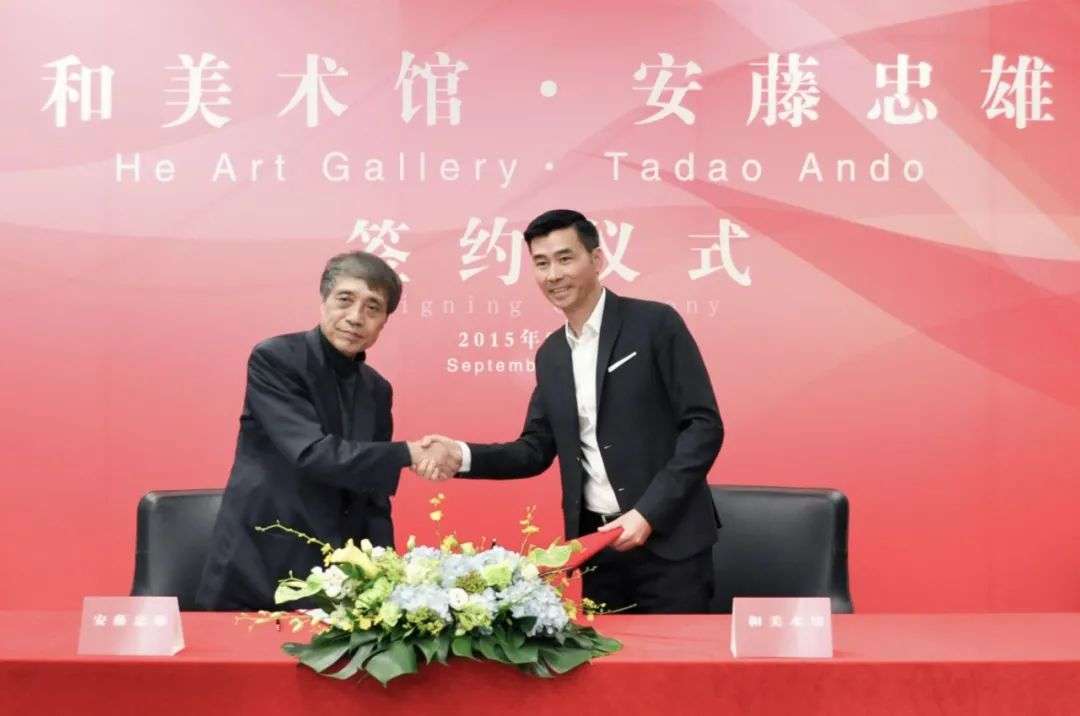 左起 安藤忠雄、和美术馆馆长何剑锋