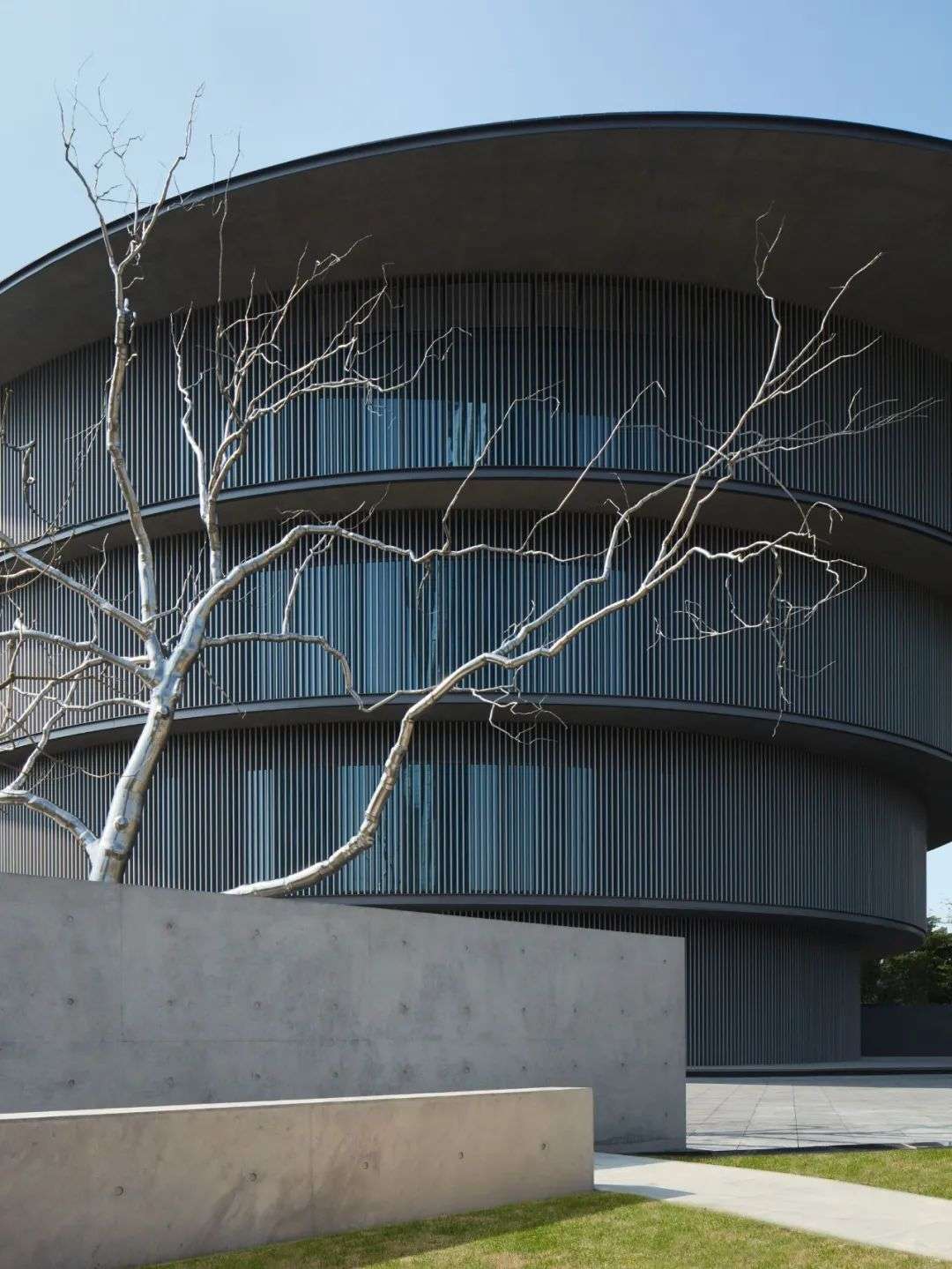 眼前的和美术馆本体,是一座宏大的圆形建筑。“圆”在安藤忠雄的建筑生涯中有特别的意义,这次的“圆”是他经过多方考量后的又一次突破。