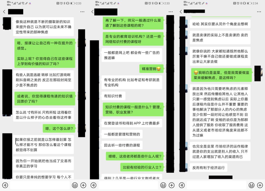 据他所说,自己经常会在网上报名听各种各样的课程,但是基本上都不花钱,偶尔有一些付费的课程,也都是十几块钱的优惠课。