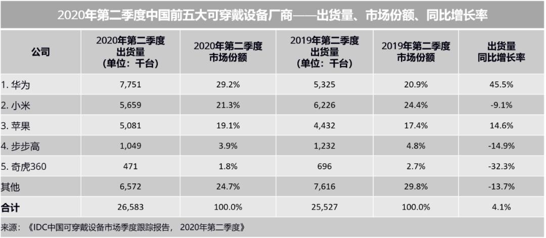 IDC《二季度中国可穿戴设备市场季度跟踪报告》显示,2020年第二季度中国基础可穿戴设备(不支持第三方应用的可穿戴设备)出货量为2224万台,同比增长6.1%,智能可穿戴设备出货量为435万台,同比下降4.9%。从数据中不难发现,对于智能可穿戴设备定义的分歧仍然左右着市场,而且可穿戴市场还没有进入相对成本更高的5G时代,这也影响着其在5G消费市场的潜力。