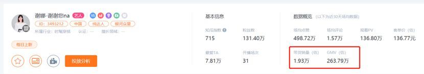 谢娜-谢谢您na直播间带货数据 (数据来源:知瓜数据)