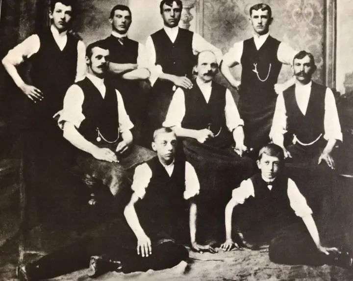 由于19世纪的波西米亚纪少有熟练的医务人员,保时捷家的长子、费迪南的哥哥(图中左下)在一次工伤后不幸离世。从此,费迪南被父亲视作了未来的家族领导,在十五岁便开始了工匠学徒的生活。