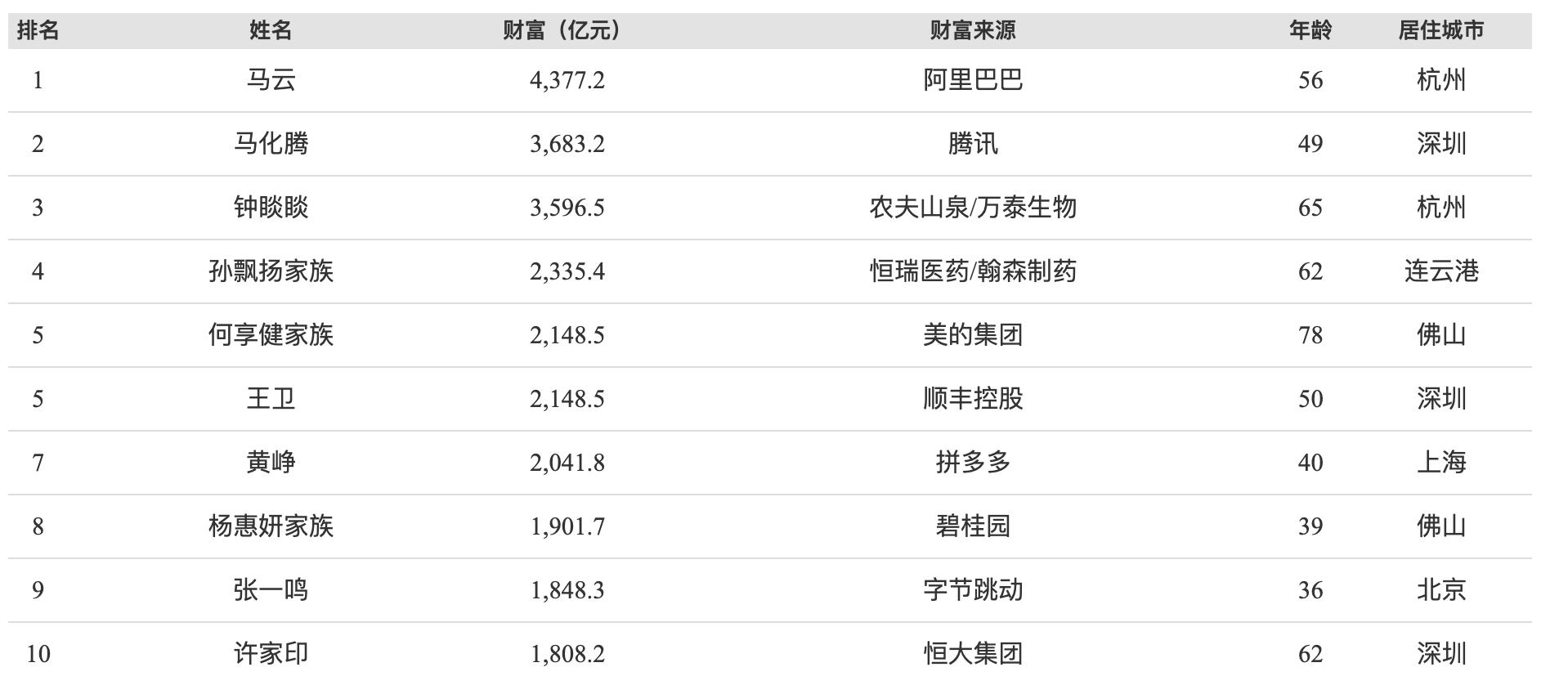 福布斯中国发布中国富豪榜:马云656亿美元蝉联首富,马化腾、钟睒睒分列二三位