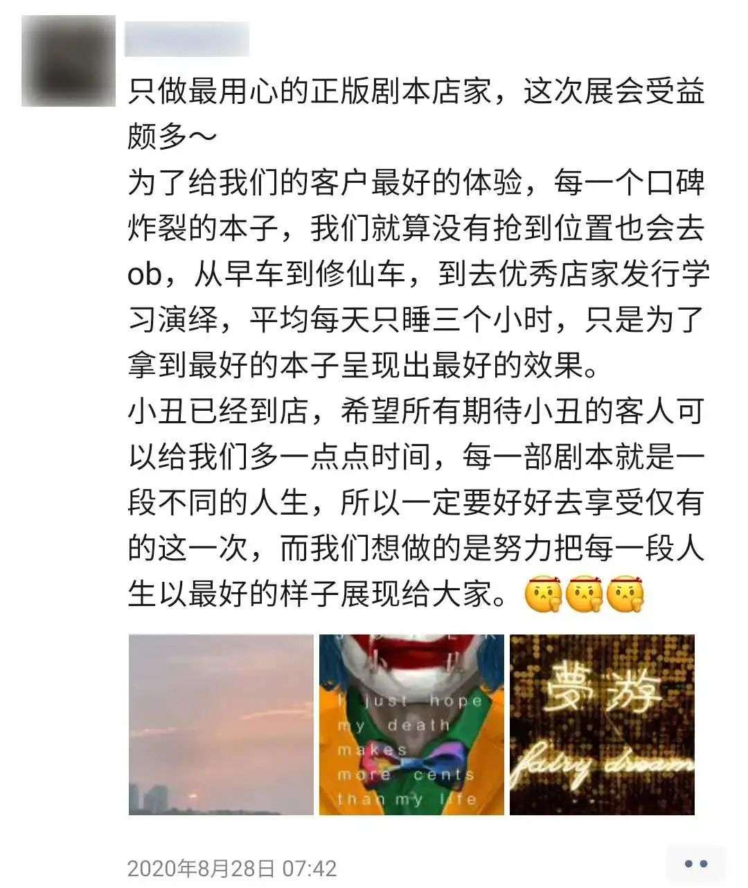 用他的话来说,他手上的剧本同质性都太强了,现在店家买本都变得很挑剔,每个人都想用最少的钱买最爆的款。市场上,一个独家剧本(只在这一家店铺出现)可以卖到4-5千,限定本(一个城市只有几家)的价位为每本1888-2888元,普通本的价格在258-688元区间。限定本比较受欢迎,可以打击盗版,但也有一些普通的盒装本卖出了几千本,作者光是分成就拿到了两百万。