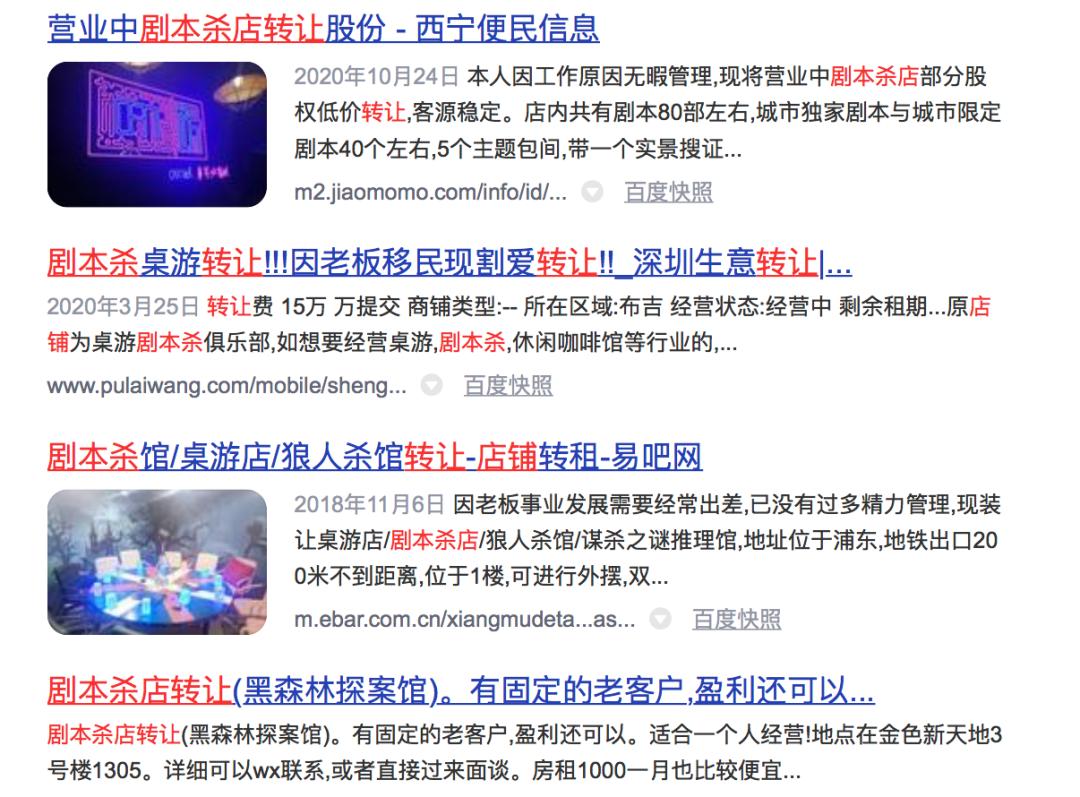 现阶段市场没有一个统一的标准与模式,在剧本内容、游戏玩法亦或是给作者的分成定价等各个关键环节,都毫无章法可循。诸如前文所述,两个月便可拿到几万甚至十几万稿酬的作者虽有,但并不是多数;此外,有的门面门庭若市,大部分门店门可罗雀。去年年初被哄炒的生意,如今也变成了围城,新入局的人野心满满,而在各大社交网站上也可以看到各种门店低价转让的广告。
