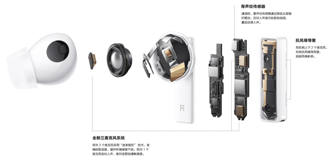 消除风吹动麦克风产生噪音的风噪抑制,就是低价产品尚未妥善解决的问题。目前主流的应对方法,是在耳机上加入专门采集风声的风道和麦克风进行转向解决,在AirPods Pro和其他手机厂商推出的高端产品中有一定效果,但研发成本和结构设计能力都有欠缺的中低端,基本难以做到。
