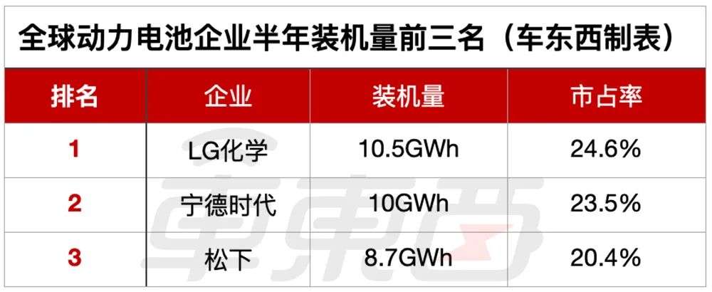 这还不算完,SNE Research公布的半年数据显示,LG化学以24.6%的市场占有率再次稳坐全球第一的位置,装机量也从5.7GWh增长到了10.5GWh。