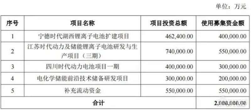在2019年年报上,宁德时代公布了四项电池厂的扩建计划,分别是:投资100亿元人民币建设宁德车里湾锂离子电池生产基地项目,产能规划45GWh;湖西锂离子电池扩建项目将新增锂离子电池,年产能约16GWh;江苏动力及储能锂离子电池研发与生产项目将新增锂离子电池,年产能约24GWh;四川时代动力电池项目一期将新增锂离子电池,年产能约12GWh。