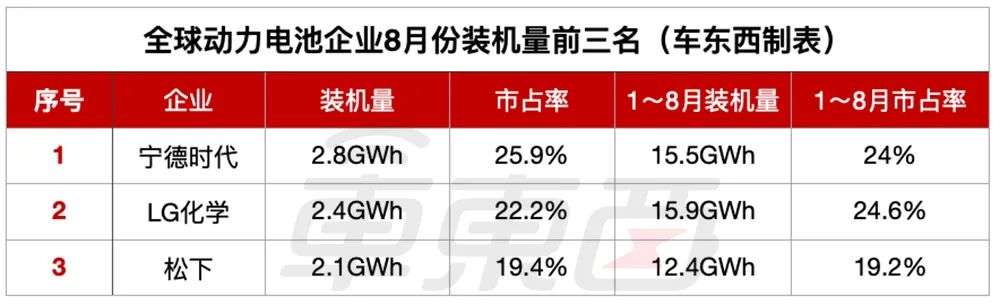 动力电池行业老前辈松下则在这场竞争中逐步淡出,无论从单月装机量上来看,还是今年前8个月的装机量来看,松下都已经滑到了第三名,这个曾经的行业老大也不可避免的出现了增长乏力的状况。