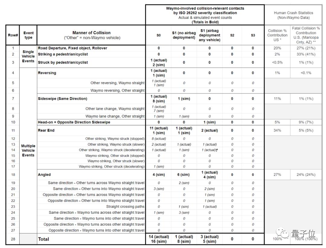 和自动驾驶等级划分一样,Waymo把事故也进行了标准区分和量化。